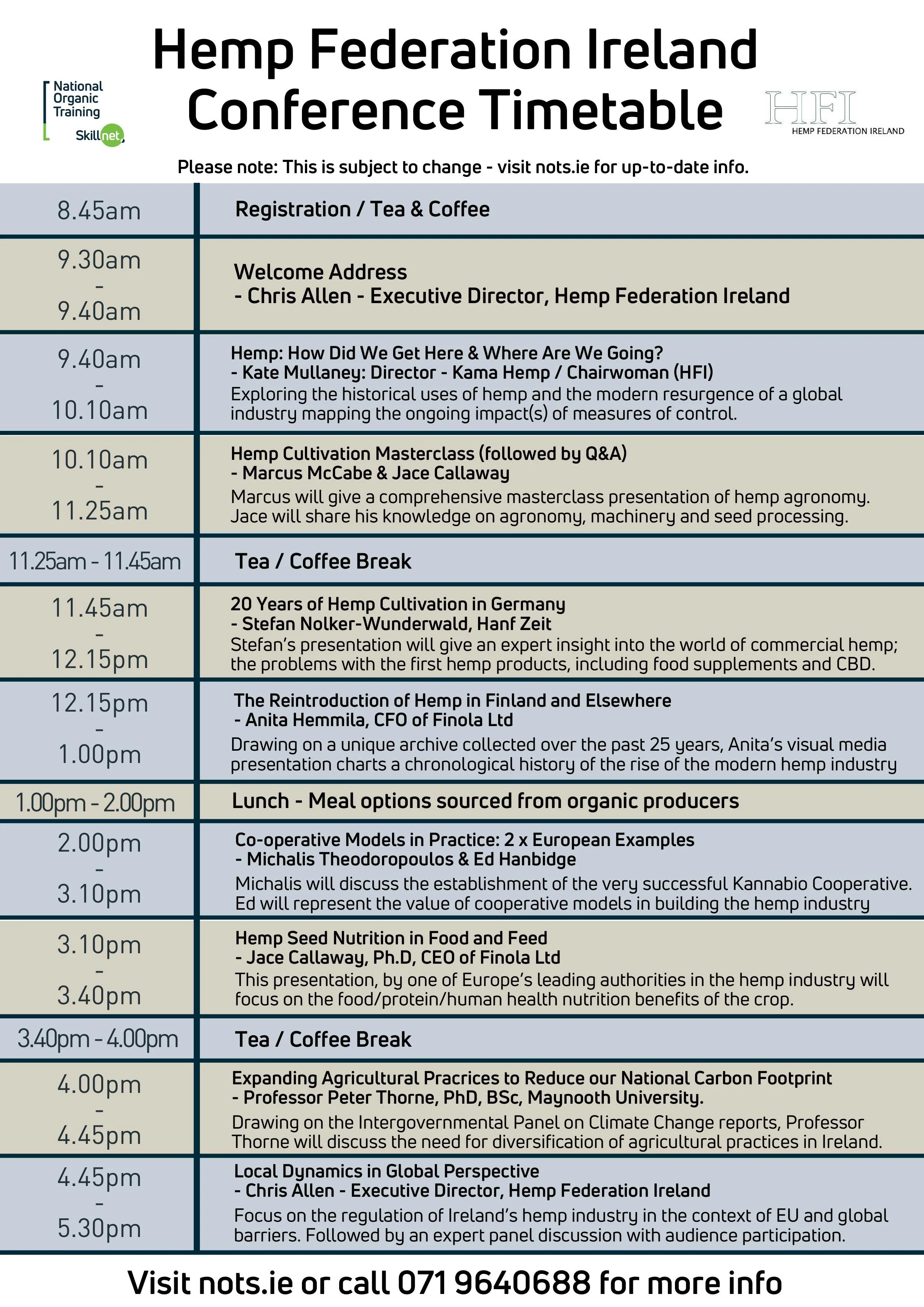 (The Hemp Federation Ireland Conference was held on 12/03/2020 at the Tullamore Court Hotel, Co. Offaly. See the programme for the conference below)